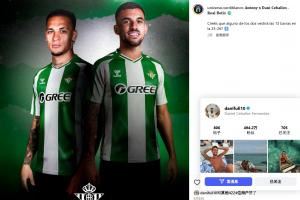 贝蒂斯球迷社媒账号universo.verdiblanco晒出海报,内容为塞巴略斯、安东尼身穿贝蒂斯球衣,配文:“安东尼X塞巴略斯——贝蒂斯。你们认为他们两人会在25-26赛季身披贝蒂斯的球衣吗?”