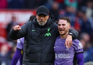 麦卡利斯特写道:我要特别感谢斯洛特。他是从克洛普过渡的完美桥梁。我和克洛普关系非常密切,队友们总开玩笑说:“克洛普是你爸爸。去给爸爸一个拥抱吧!”